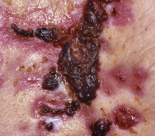 Características diagnósticas: por la gravedad de la inflamación, se perciben erosiones y ulceraciones con costras hemorrágicas, que dejan cicatrices deprimidas o queloides.